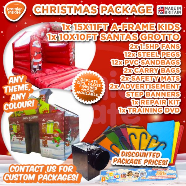 Cater to the Christmas market with this Super Crimbo package which consists of a Christmas themed bouncy castle & Santa's Grotto.
