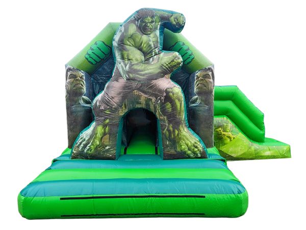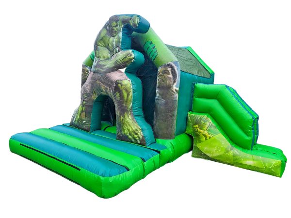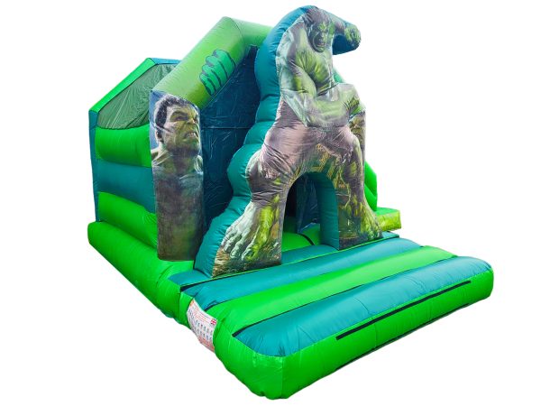 Brand New Premier Inflate design Available with a eye catching 3D Hulk design at the front of this Bouncy Castle for Sale. Completely Unique design which will really have you standing out in the crowd and complete with vibrant digitally printed Hulk themed artwork. Ideal to be rented out to private households and/or own personal use who would like to buy there own heavy duty bouncy castle.