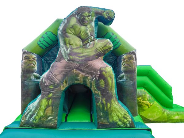Brand New Premier Inflate design Available with a eye catching 3D Hulk design at the front of this A Frame Commercial home/rental use Bouncy Castle. Completely Unique design which will really have you standing out in the crowd and complete with vibrant digitally printed themed Hulk artwork.