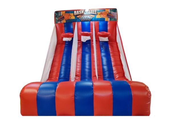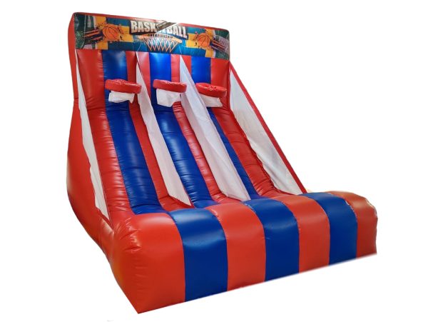 A superb Inflatable Basketball Shot game ideal for all ages. Available to purchase for yourself this can be a family inflatable to pull out when the weather is nice or an additional extra hire item for local bouncy castle hire/rental companies. Manufactured within the UK this heavy duty commercial 610gsm Inflatable basketball game is available to buy at a fantastic affordable price! A Fun and exciting game for all of the family to get involved with - can be used for birthday parties or events.