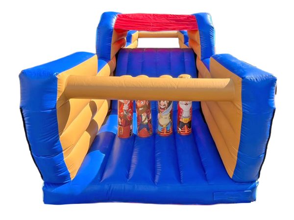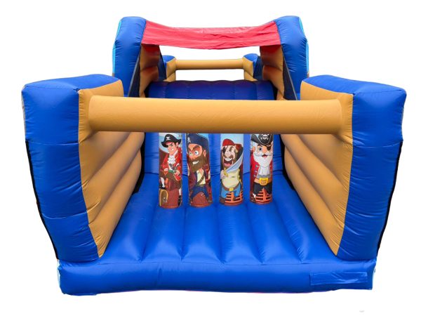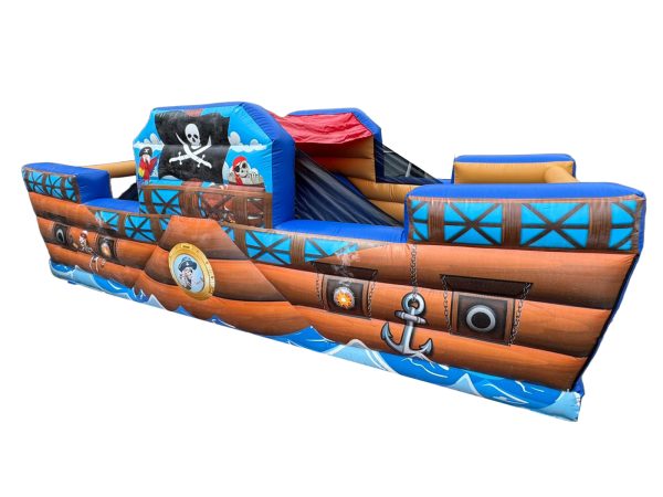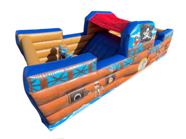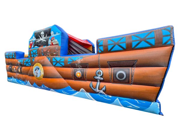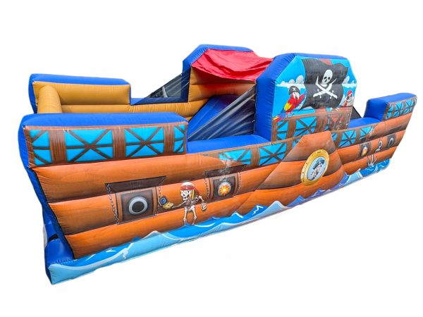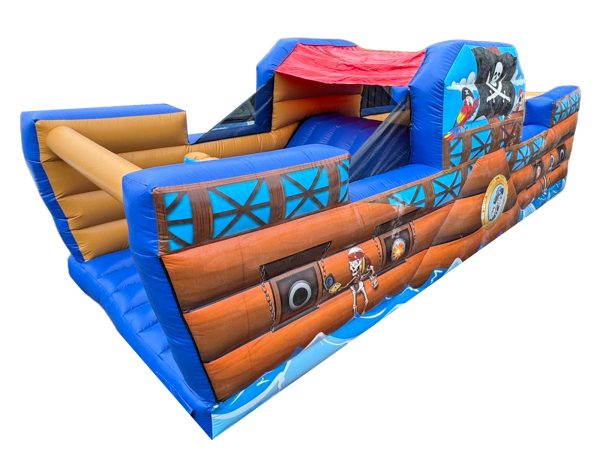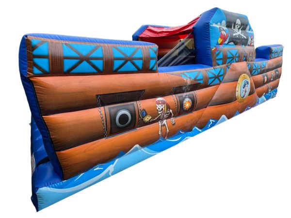 30 x 11 ft Commercial Bouncy obstacle pirates ship for sale in a variety of colours. A unisex design which is great for both boys and girls. A perfect addition to any hire fleet which can be personalised as well as your own choice of colours & artwork.