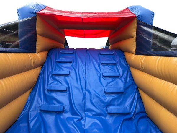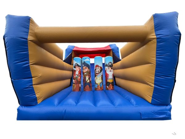 Easily one of the most popular sized bouncy obstacle course castles, this pirates ship for sale is available in a variety of colours & themes which is ideal for back garden use. These style bouncers are a manageable weight which are easy to handle and will fit into the rear of a car. Perfect for both boys and girls. This Castle can be made to your specifications i.e. choice of colours, size, style of artwork and can also include your business contact details.