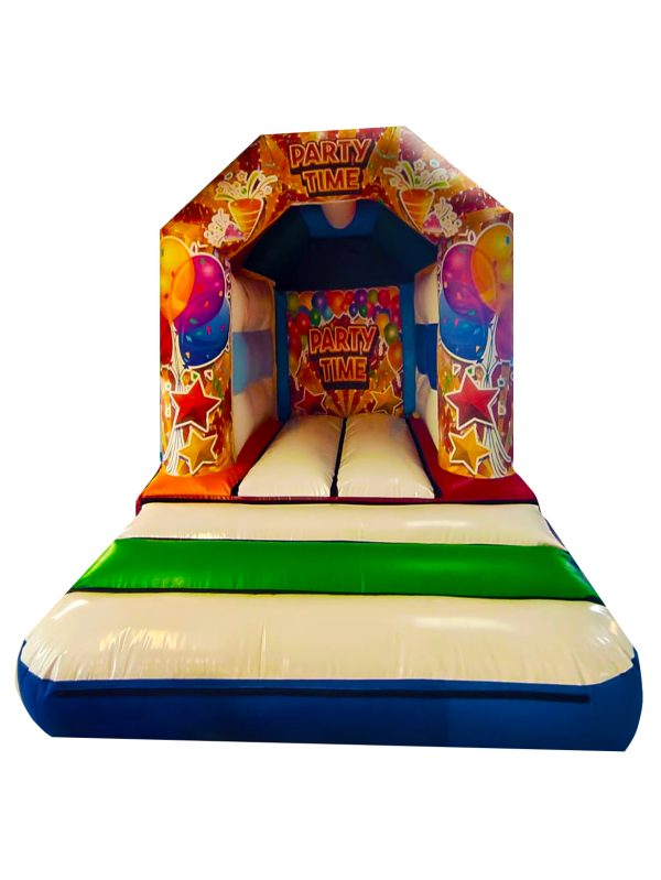 11x8ft Commercial Party Bouncy Castle for sale. Featuring a vibrant party design fun and eye-catching artwork, Colourful and bold colours and theme which has been digitally printed. This is an ideal unit for children with its unisex colours and eye catching theme.