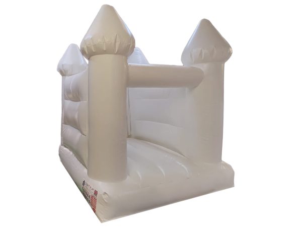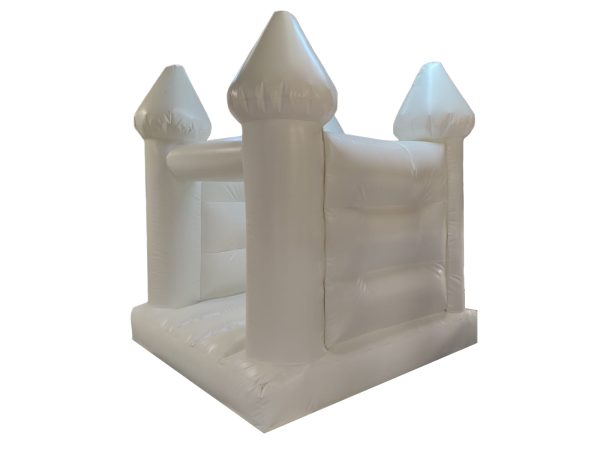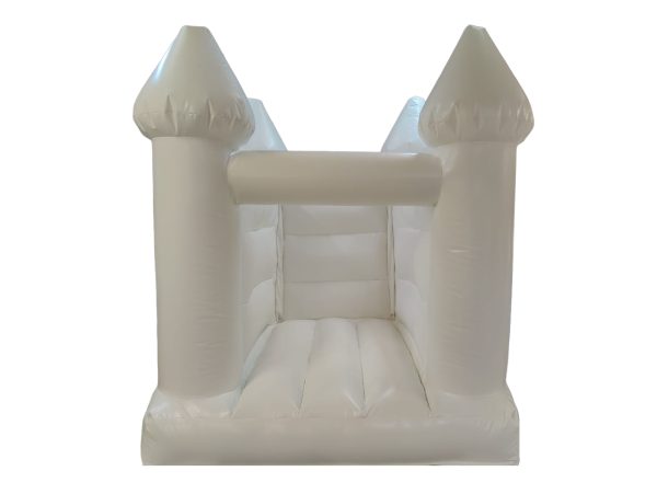 8x8ft Commercial Turret Top Plain White Bouncy Castle for sale. This is a unique design featuring no step at the front of the castle. With its White colour it is ideal for children of any age. Perfect Bouncy Castle for weddings / christenings / baby showers or birthday parties.